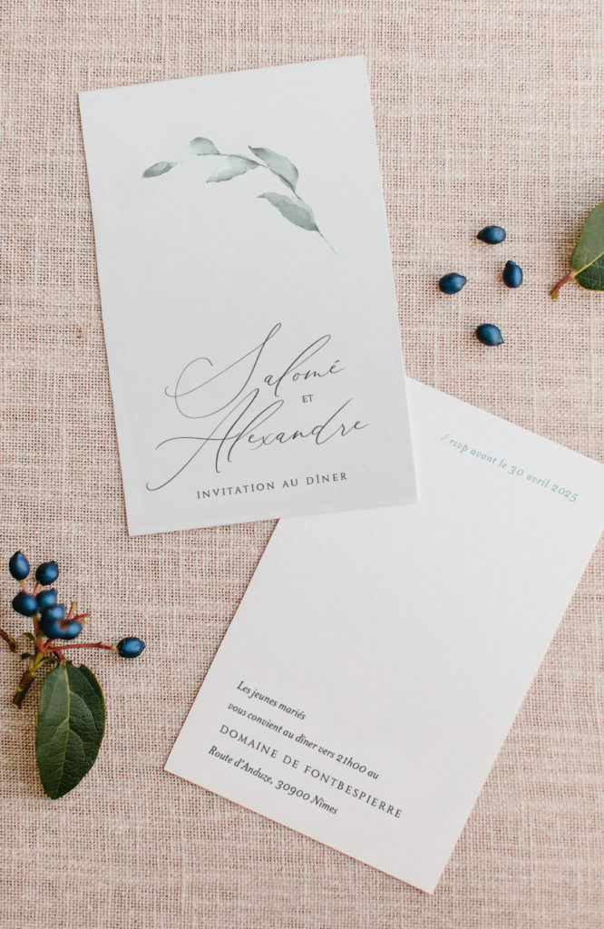 Ces dernières semaines, nous avons eu le plaisir de vous présenter les shootings d’inspiration de nos nouvelles séries Mariage Alba et Sienne. Aujourd’hui, c’est la série Saint-Rémy qui est à l’honneur. Inspiré du minimalisme et de l’univers végétal, cette série de papeterie Mariage sera parfaitement adaptée aux mariages de printemps et d’été bucoliques faisant la part belle aux éléments naturels. Le faire-part Saint-Rémy et ses composants assortis ont été créés à partir de moodboards champêtre / chic, inspirés de la Provence et des tendances déco modernes. S’y mêlaient des tables & intérieurs minimalistes propices au cocooning et des plantes et végétaux déployant un éventail varié de teintes vertes pleines de douceur (on pense notamment au vert sauge, au vert-de-gris et au vert céladon).