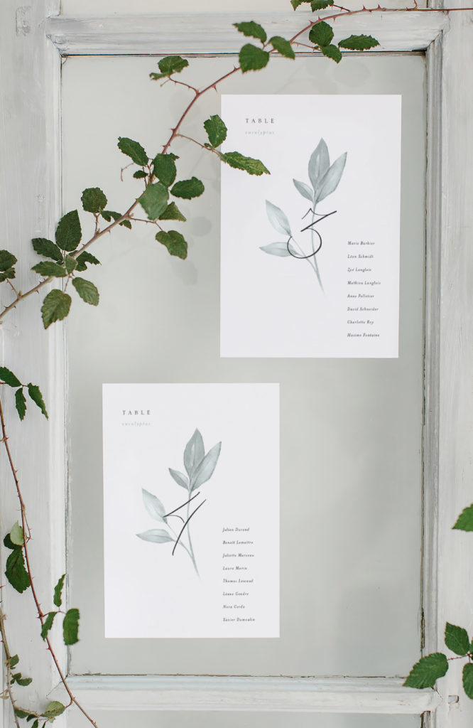 La scénographie de Morgane Planque colle parfaitement à la série. La Designer a souhaité mettre en avant nos créations sur une table simple et sans fioritures. Dressée avec délicatesse, la table est recouverte du plus vieux tissu au monde (le lin), avec une composition végétale faisant écho aux illustrations présentes sur la papeterie… On aime particulièrement sa proposition de mise en scène pour les plans de table, placés sur une fenêtre ancienne.