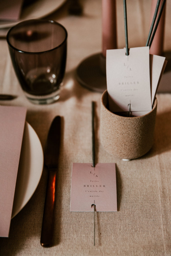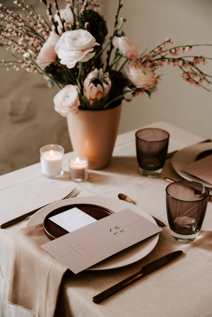 Pour ce premier shooting d’inspiration en collaboration avec Coralie WD, c’est la série Cinder Rose qui était à l’honneur. Pour cette scénographie, la Wedding Designer a créé un univers doux et féminin, dans lequel elle a joué sur une palette de teintes naturelles s’alliant parfaitement aux roses feutrés et romantiques de la papeterie. On vous laisse découvrir le résultat ci-dessous !